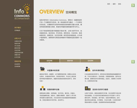 針對圖書(shū)館的IC空間的管理,專(zhuān)業(yè)的門(mén)戶(hù)網(wǎng)站,包括對各類(lèi)房間的介紹,相關(guān)設備的介紹,以及和學(xué)生的互動(dòng)界面等,如下圖所示: